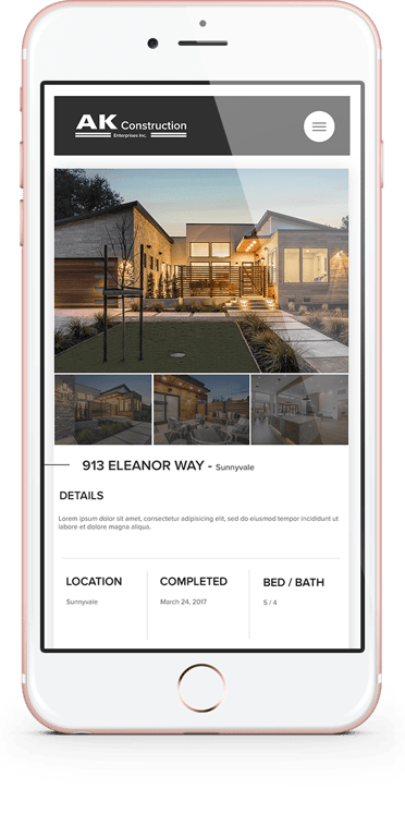Building impeccable homes in the tech savvy Silicon Valley requires a lot of attention to detail. It’s difficult to sell attention to detail if your brand touch points don't speak to it on the same level as your craft. Knowing the value AK Construction places on its attention to detail with their projects, it was agreed that we would speak to their audience in a similar fashion. Content would be plentiful, detailed, and relevant. Examples of current and past projects would convey the depth of experience. Additionally, the interface would wow. In doing so, this will resonate with his audience in a way that isn't being done by their competition.
