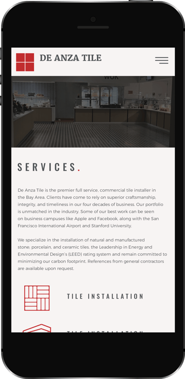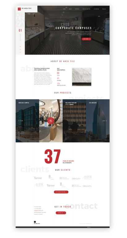 De Anza Tile is the Bay Area’s premier commercial tile and stone installer chosen by the largest commercial contractors in the world. The digital experience for De Anza Tile became an integral piece of how the company extends its brand voice into everything it does. A new fully custom website was important for continued company growth, brand perception and ongoing recruitment efforts.